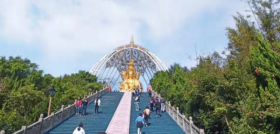 心之所向,興之所往。穿過(guò)馬巒山山頂,沿著大路繼續(xù)前行,途徑東部華僑城,繼續(xù)往前,走過(guò)樹木林立的馬路,可以看到遠(yuǎn)遠(yuǎn)矗立在群山之上的四面觀音。行至大華興寺山腳,映入眼簾的是高大的石橋門。一同前行的伙伴們?cè)谏侥_下休整片刻,便一鼓作氣地登上了大華興寺,近距離地觀看哼哈二將,陳奇鑄像。走進(jìn)大雄寶殿,感受信仰的力量。再沿著階梯直上,便是重達(dá)158噸的觀音座蓮像。在山頂眺望遠(yuǎn)處的東部華僑城,觀賞云海谷、茶溪谷與大俠谷的山林,享受山頂?shù)那屣L(fēng)。奔波了一天,到時(shí)間與山野告別,去往預(yù)定的酒店,享受西餐自助和頂級(jí)溫泉,放松疲憊的身體,養(yǎng)精蓄銳,為第二天的行程做好準(zhǔn)備。