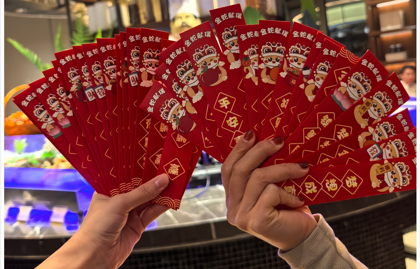 待酒過三巡,菜過五味,年夜飯的氛圍愈發(fā)濃烈。此時,今晚的主持人突然起身,手中緊握著一個裝飾華麗的盒子,臉上洋溢著興奮的笑容,高聲宣布:“接下來,我們將進入今天的游戲環(huán)節(jié)——盲盒搖簽(紅包)!”話畢,一石激起千層浪,讓原本還竊竊私語交流的同事們瞬間沸騰起來,大家的目光齊刷刷地聚焦在主持人身上,眼中滿是驚喜與期待。這個突如其來的消息,如同一顆投入平靜湖面的璀璨石子,不僅打破了原有的寧靜,更激起了層層歡樂的漣漪。 “人生得意須盡歡,莫使金樽空對月?!?此刻,這句詩恰到好處地描繪出大家的心情。在這歡樂的時刻,每個人都迫不及待地想要參與其中,感受那份未知的驚喜。