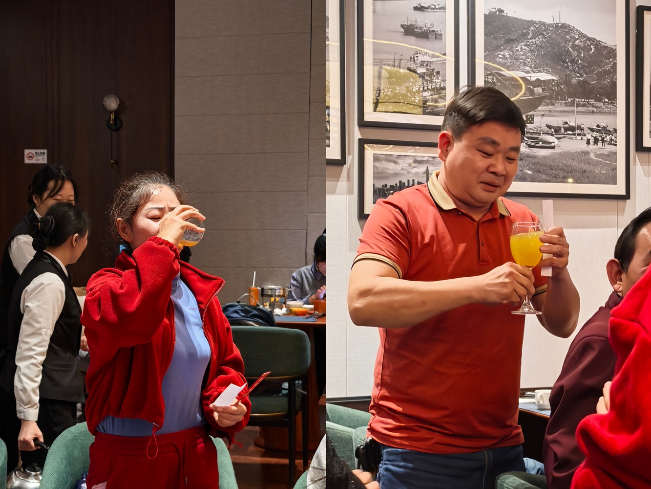 有的同事抽到了一杯特制飲料的 “甜蜜懲罰”。當看到那杯顏色奇異、散發(fā)著神秘氣息的特制飲料時,有的人瞪大了眼睛,露出驚訝又略帶恐懼的表情;有的人則是皺起眉頭,苦笑著搖頭,但還是勇敢地拿起杯子,準備迎接挑戰(zhàn)。